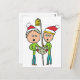 Xmas Carol Singing design features two Christmas carol singers sharing sheet music and a light. They wear Xmas hats and will be appearing at your front door for Xmas carol singing and general carolling festive tidings!