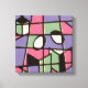 De kvarhållna glasbilsbilarna i Stil i blått, grönt och svart har en originalutformning av det linoleumliknande handklippsblocket Kellar Card vintage med två stiliserade karolers som håller kvar sin musik under och en gatulampa. Dekorera ditt hem, din väns brevlådor eller fyll i lådorna under träd i jultid med en originalutskrift av linoleumhandskar och njut av en dekorativ julhelg i år!