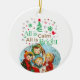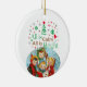 En vacker julprydnad med en illustration av vintagen där små barn sjunger sång, citatet "All is lugn, All is bright", skrivet med en kalligrafi av söt elegant. På baksidan av Ornament kan du lägga till namn, året och ett familjefoto. PS: Båda bilder kan anpassas. Anpassa enkelt designen och beställ dina prydnadsföremål idag.