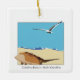 Ornament med en tvådimensionell Horseshoe Crab med havsgull bild som flyger över stranden med vågar. Datum Anpassade på baksidan. Carolina Beach, North Carolina in Century font font på grund.