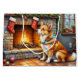 A cozy Christmas artwork featuring a loyal Carolina Dog sitting beside a glowing fireplace with festive stockings and shimmering Christmas lights. This heartwarming holiday scene highlights the Carolina Dog’s intelligent and affectionate nature, making it a perfect piece for dog lovers and festive decor enthusiasts. Bring home the warmth and magic of the holidays with this charming pet-inspired art.