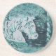 Den här bilden i ett vackert akvamarin kommer från ett originaltextat, lino-klippt tryck från mig, inspirerat av att ha arbetat på några vackra, gamla karuseller.