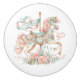 This ceramic cabinet knob is shown in white with a cute carousel horse art print.