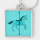 Carousel Horse - Turquise och Aqua Fyrkantig Silverfärgad Nyckelring