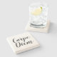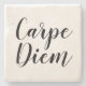Carpe Diem black and white script typography Stone Underlägg. Anpassningsbar färg dricker brödrostar med personlig citat eller text. Betyda, beslagta dagen. Snyggtens handskriftsformat. Snyggt Fågelpresentidé för vänner, familj, medarbetare, kollega, chef, medarbetare osv. Underbar för kontor, bröllopsfest eller hem. marmor, kalksten, sandsten, travertin.