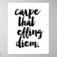 Gå ut och hämta den! Träffa dagen med den här teckningsutskriften som innehåller "Carpe that Effing Diem" i svart penseldragerad handskriven stil-typografi.