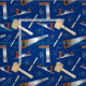 Roligt, färglös väv som är tryckt med mönster på verktyg från mattor, inbegripet gräsänder, sågar, flygplan och kritor. På en djup blå bakgrund. Du kan ändra bakgrunden till färg och bara klicka på anpassa.
