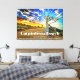 Carpinteria Beach har en vintage retro-bildsbild som visar en soluppgång ovanför blåmorna vid Carpinteria Beach i Kalifornien.