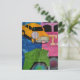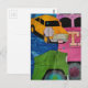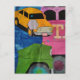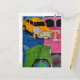 Cars and Trucks yellow green pink blue collage Vykort