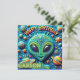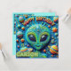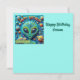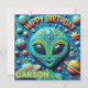 En bild av Carson, den vänligt sinnade utlänningen, som ska fira Carsons födelsedag. Hälsning på kortet är "Grattis på födelsedagen Carson". På baksidan av kortet finns en liten version av samma bild. Det finns gott om utrymme för skriva av ett meddelande. Tillverkad med Bing.