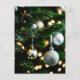 Détail d'un sapin de noël décoré, dans les tons vert et argent. parfait pour les fêtes de fin d'année.
