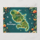 Escape to the tropics with this beautiful artistic illustration of the Martinique map. This colorful design highlights the rich biodiversity of the "Island of Flowers," featuring a detailed depiction of the famous Mount Pelee volcano in the north. Surrounded by a lush border of exotic flowers, tropical greenery, and hummingbirds, this map captures the vibrant essence of the French West Indies.