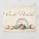 En del av en fyrdelad uppsättning. Vintage av ett vykort med "Carte Postale"-rubrik och poststämpel för Fransken bredvid en rad med vackert färgad fågelägg: spräckt, brunt och blått. Baksidan kommer från baksidan av ett vykort för vintagens Fransk.