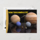 Une carte postale originale qui fera surement sourire votre facteur, et votre destinataire. Les planètes sont dessinées à l'échelle, ainsi que la courbure du Soleil (sur la gasche de la carte). Jupiter est la plus grande planète de notre système solaire, avec un diamètre 11 fois plus grand que celui de la Terre.