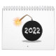 A traditional cartoon style bomb with lit fuse with the date of 2022 isolaterd over white
