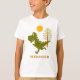 This Kid's T-Shirt features a cartoon illustration of the cute and funny Dinosaur running under the hot Jurassic Sun. Illustration is designed in the warm colors: yellow, orange and green. You can easily personalize this t-shirt with your boy's name.