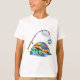 A fun cartoon turtle with a colorful shell and fishing gear — perfect t-shirt for boys who love the sea, fishing, and outdoor fun.