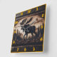Carved Moose Design in Forest Setting Fyrkantig Klocka