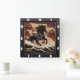 Carved Wave Galloping Wood Horse Clock Fyrkantig Klocka
