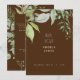 Vattenfärgad eukalyptus. . Enkelt. Inbjudningskort för möhippan. Chocolate Brown.