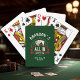 Hit the jackpot at bachelor party poker nights with these green "All In Before the Ring" custom playing cards featuring a lucky casino tablecloth design and bold playing card graphics. The vibrant green backdrop channels Vegas strip, golf course clubhouse, or Irish pub poker tournament energy while keeping every hand feeling like a winning bet. Personalize the groom's name, city, state, and weekend date to create matching decks for the entire bachelor crew. Regulation-size cards ready for shuffling through brewery games, lake house showdowns, or 24-hour card sessions.