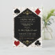 Vintage card design Great and Casino themed. It features Roaring 1920's old Hollywood Art Deco style shape, royal faux gold freer-de-lis as dividers, vintage fonts, on a gold black Art Deco pattern, as well playing cards suits with a golden edges. Use Personalize tool to add your information. For more, visit please, my Casino Poker Wedding Collection.