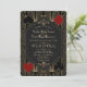 Roaring 20s Great Gatsby Art Deco bröllopsinbjudan med kasinotema. Kunglig, romantisk, kasino Vegas-stil kortdesign med en Great Gatsby art deco-stil, en Roaring 1920-talets gamla Hollywood, med falskt guld folie Fleur-de-lis överlägg, avdelare och vackra teckensnitt, spelkortfärg, på en svart texturerad bakgrund. För mer, besök min 20s Gold Black Great Gatsby-samling.