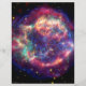 Cassiopeia A Supernova ... Döden blir hennes Cassiopeia en supernova... Döden blev hennes belägenhet 10 000 ljusår bort i den norra konstellationen Cassiopeia... är återstoden av en gång stor stjärna som dog i en våldsam supernova-explosion för 325 år sedan. Den består av en död stjärna, som kallas neutronstjärna, och en omgivande snäcka av material som sprängdes när stjärnan dog. Neutronstjärnan kan i Chandra-data ses som en vass turkospunkt i mitten av den skakande snäckan.