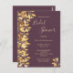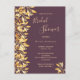 Ett trendig botaniskt Inbjudningskort för möhippan i kassis, djup lila. Dekorerad med faux guld färgad foliage och sprit. Modern text med stora bokstäver, typografi med texten: Möhippa. Mallar för briden som ska vara namn och party. Golden text. Bakåt: färgadens bakgrund för chassit. Tips! Om du inte vill att det ska se ut som ett vykort klickar du på anpassa, går till baksidan och tar bort delaren och lägger till frimärke.