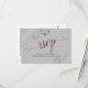 Den här vackra OSA kort gör det enkelt för dina gäster att svara på din bröllopsinbjudan. De har en elegant som är utformad med cassis-lila- eller färgad-manusbilder på en grått-bakgrund, och latinska grått-faux-folie- och virvlar i hörnen. Kortets baksida är ett formulär där dina gäster kan fylla i och lämna tillbaka och ange om de kan närvara eller inte, hur många gäster de tar med sig och hur de väljer måltider. Det finns också plats för en webbplats så att dina gäster kan svara på online om det passar dem bättre.