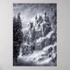 Ett slott i snöberget i snövädret i snö ligger runt slottet. Det här är en AI-skapad konst.