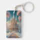 Ett stort fantasislott kommer från ett pristinkande snöslandskap, omgivet av en härlig rosa träd. Bergsområden med tak i snö genomkorsar horisonten, deras toppar sjönk i den eteriska glöden av ett sol. Visste du att rosa under medeltiden betraktades som ett färg av makt och prestige? Tullren och striderna talar om en rik historia, medan de känsliga blommarna i det omgivande träd antyder en mjukare, mer magisk sida av fästningen.