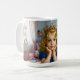 Art mug showing a golden-haired girl wearing a jeweled crown in her pastel castle room, surrounded by toys and royal décor, evoking fantasy, joy, and childhood wonder.
