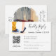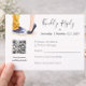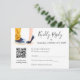 En stilren bröllops-RSVP-design med en modern illustration av ett par med en ren, minimalistisk layout. Inkluderar en QR-kod för enkel digital åtkomst, kombinerat med elegant skripttypografi och en raffinerad struktur för en modern bröllopsupplevelse.