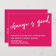 Denna svitens utmärkande drag är på grund av det moderna, handskrivna typsnittet som används för accentfraser. I denna del användes det handskrivna typsnittet för att skapa grafik som visar orden "förändring är bra" på framsidan och "håll kontakten" på baksidan. Den ljusa hallonrosa bakgrunden kan ändras till valfri färg du föredrar. Vänligen hör av dig med eventuella specialförfrågningar eller för anpassningshjälp. // 100 //