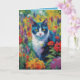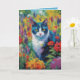 A beautiful card featuring and an adorable cat with attitude! Suitable for all occasions. Blank Inside for your own words. The inside and back of the card is in a matching blue shade.