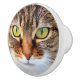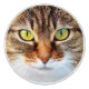 Cute cat ansikte med grönt och gult öga. Ett foto om ett hårigt kattdjur, som har öga som druvor.