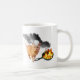 En orange katt med en köksmästare som håller en flammande friteringsplatta på det här roliga matlagande mugg.