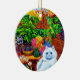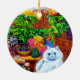 Ornament med Louis Wains djurmålning Master of Cat College (1860-1939). En tankfull vit katt med en slående blå öga sitter på ett underligt sätt bredvid ett pulserande urval av vackra blommor. De stora kattkollegiet ligger i bakgrunden under en rosa och blå himmel. En underbar gåva till kattälskare och engelsk konst.