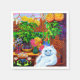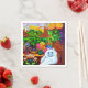 Napkins med Louis Wains djurmålning Master of Cat College (1860-1939). En tankfull vit katt med en slående blå öga sitter på ett underligt sätt bredvid ett pulserande urval av vackra blommor. De stora kattkollegiet ligger i bakgrunden under en rosa och blå himmel. En underbar gåva till kattälskare och engelsk konst.