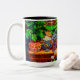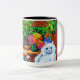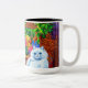 Kaffe Mugg med Louis Wains djurmålning Master of Cat College (1860-1939). En tankfull vit katt med en slående blå öga sitter på ett underligt sätt bredvid ett pulserande urval av vackra blommor. De stora kattkollegiet ligger i bakgrunden under en rosa och blå himmel. En underbar gåva till kattälskare och engelsk konst.