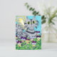 Denna vackra lilla grått-stripade kattpäls är sitta i en fullt i fält av de charmerande blommor som brukar kallas Johnny-hoppups, som också kallas vild pansies. Hela scenen ställs mot en grumlig blå vårtid himlar och omges av ett detaljerat gräns som matchar färg i blommorna.