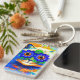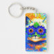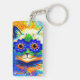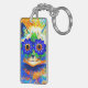 Nyckelkedja med Louis Wains målning Kat Flower Öga (1860-1939). En regnbågskatt är en stor grej. Blåa blommor täcker hans öga. En underbar gåva till kattälskare och engelsk konst.