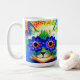 Kaffe Mugg med Louis Wains målning Kat Flower Öga (1860-1939). En regnbågskatt är en stor grej. Blåa blommor täcker hans öga. En underbar gåva till kattälskare och engelsk konst.