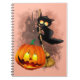 Cat Fun Halloween Character scared by a Pumpkin Anteckningsbok