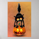Cat Halloween Skrämt Tecknad på Pumpkin Poster