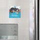 Säg Tack med en köldmedierad magnet. Den här magneten har en visuell illustration av en tuxedo-katt som ljuger på en hylla och håller en vit daisy. Nedan finns ord "Tack" som kan vara personlig att säga något som ni själva väljer. Artwork © Lisa Marie Robinson. Alla Höger reserverade.