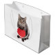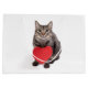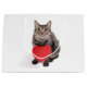 Cute tabby katt med ett rött hjärtans dag-hjärta på vit bakgrund