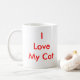 Bild av kattens ansikte på ena sidan och jag kärlek min katt på andra sidan.