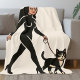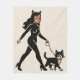 Cuddle up to your furry friend with this soft and cozy bone throw blanket designed for the modern cat mom. The comic inspired art features a sassy cat lady walking her grouchy tuxedo cat on a leash. Channel more quality time with your kitty with this adorable blanket. Meow | The matching throw pillow is available in our store.